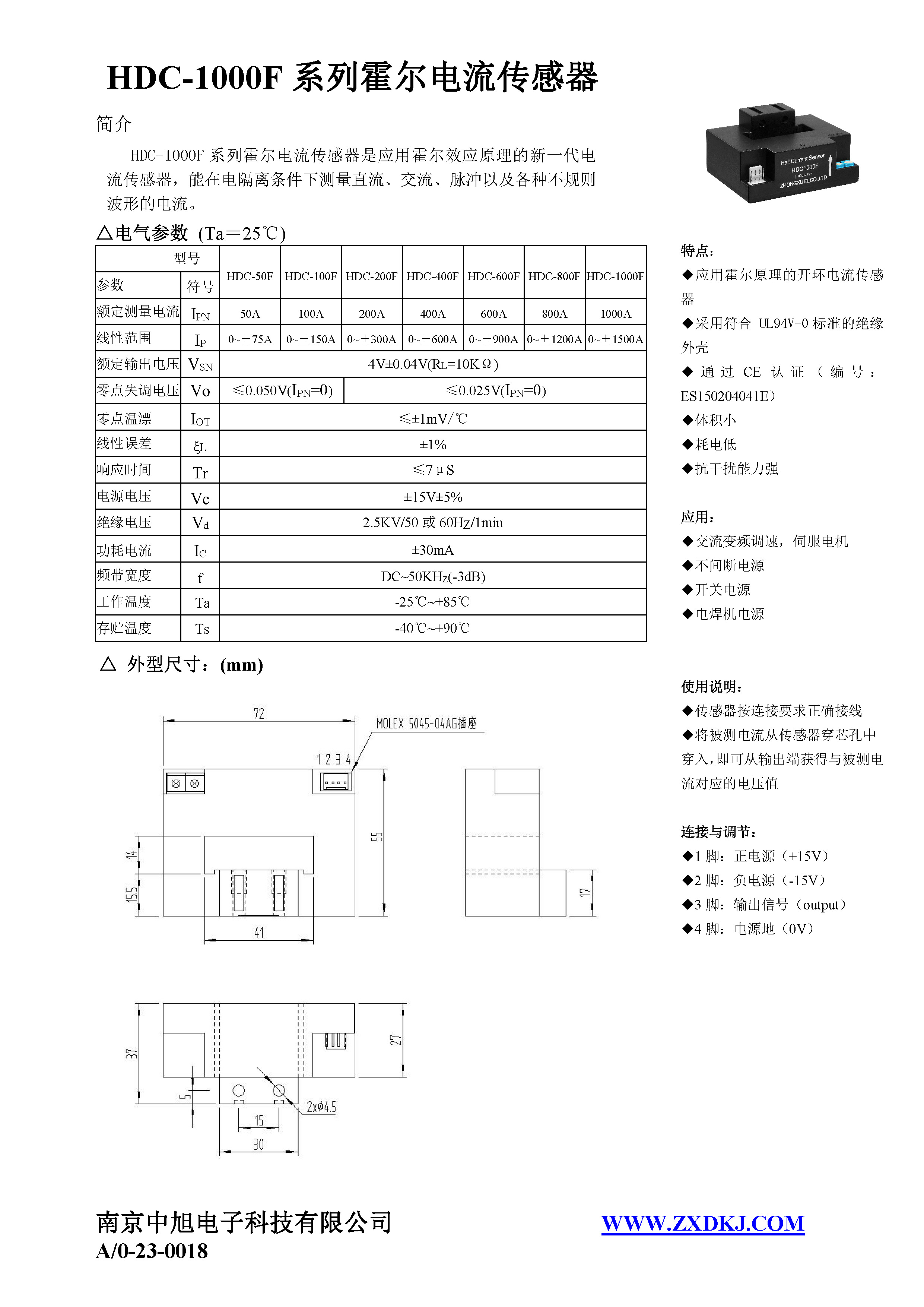 HDC-1000F系列霍爾電流傳感器是應用霍爾效應原理的新一代電流傳感器,能在電隔離條件下測量直流、交流、脈沖以及各種不規則波形的電流。
