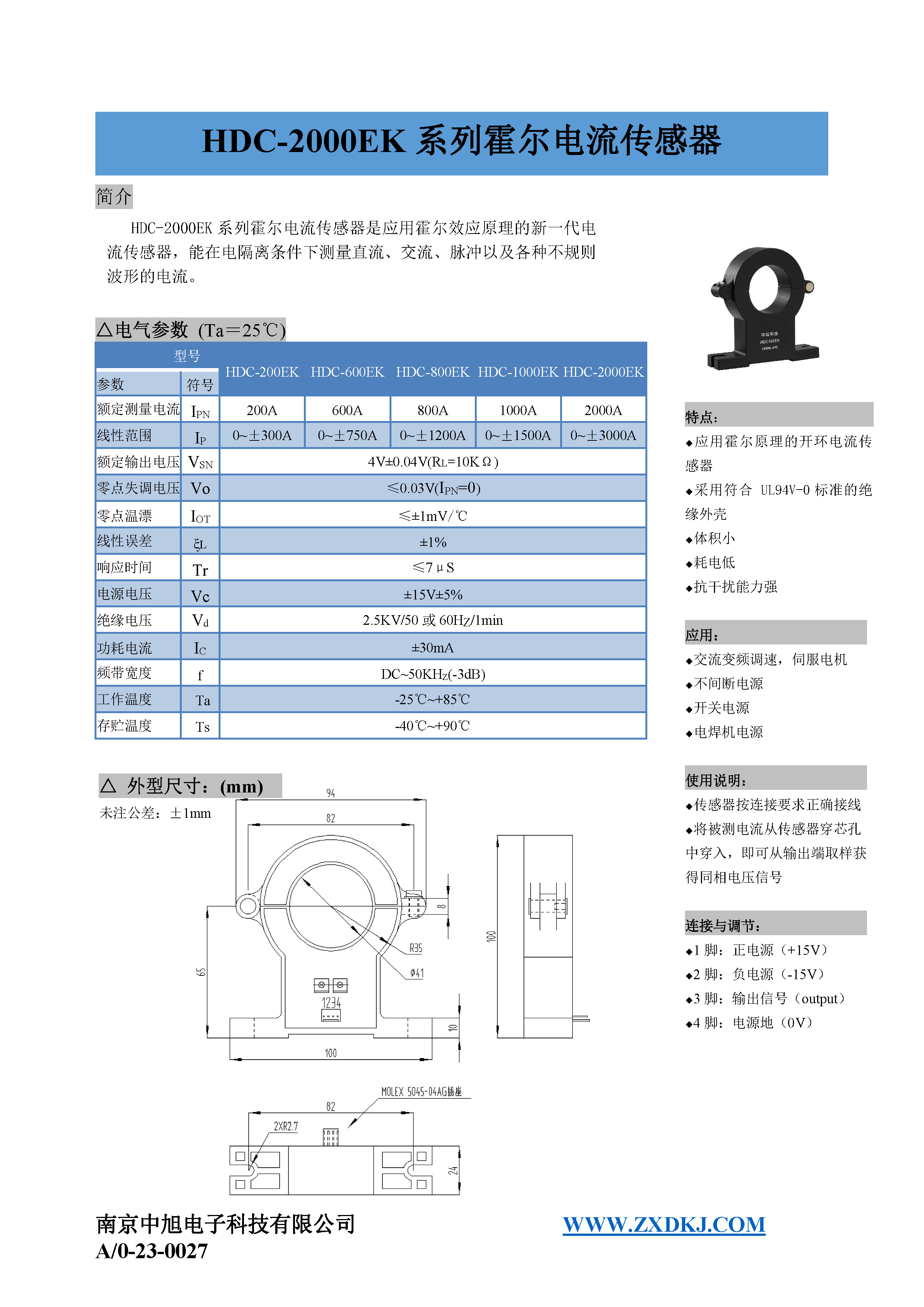HDC-1000EK系列霍爾電流傳感器是應用霍爾效應原理的新一代電流傳感器,能在電隔離條件下測量直流、交流、脈沖以及各種不規則波形的電流。