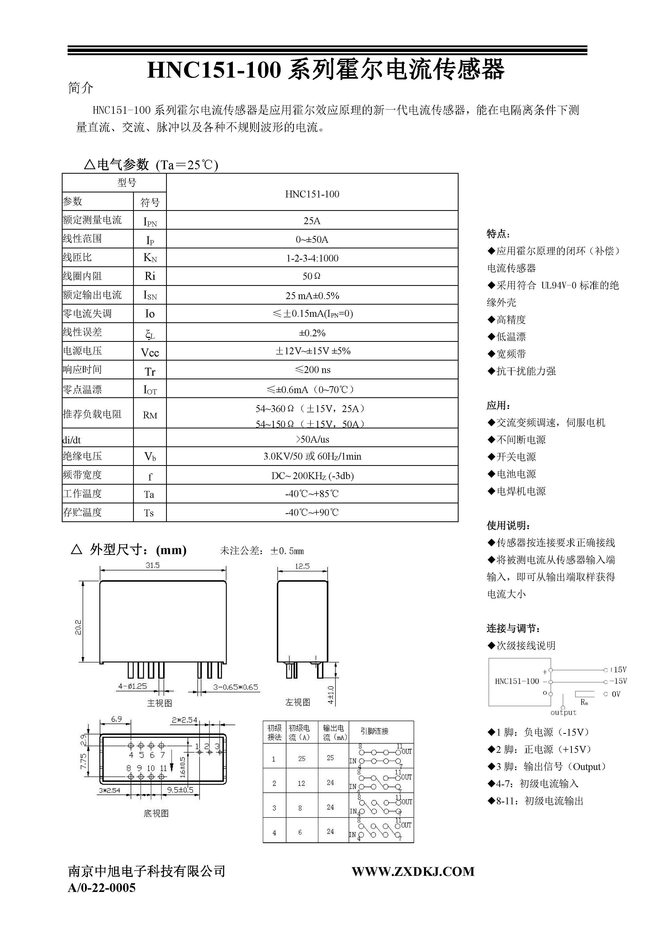 HNC151-100系列霍爾電流傳感器是應用霍爾效應原理的新一代電流傳感器,能在電隔離條件下測量直流、交流、脈沖以及各種不規則波形的電流。